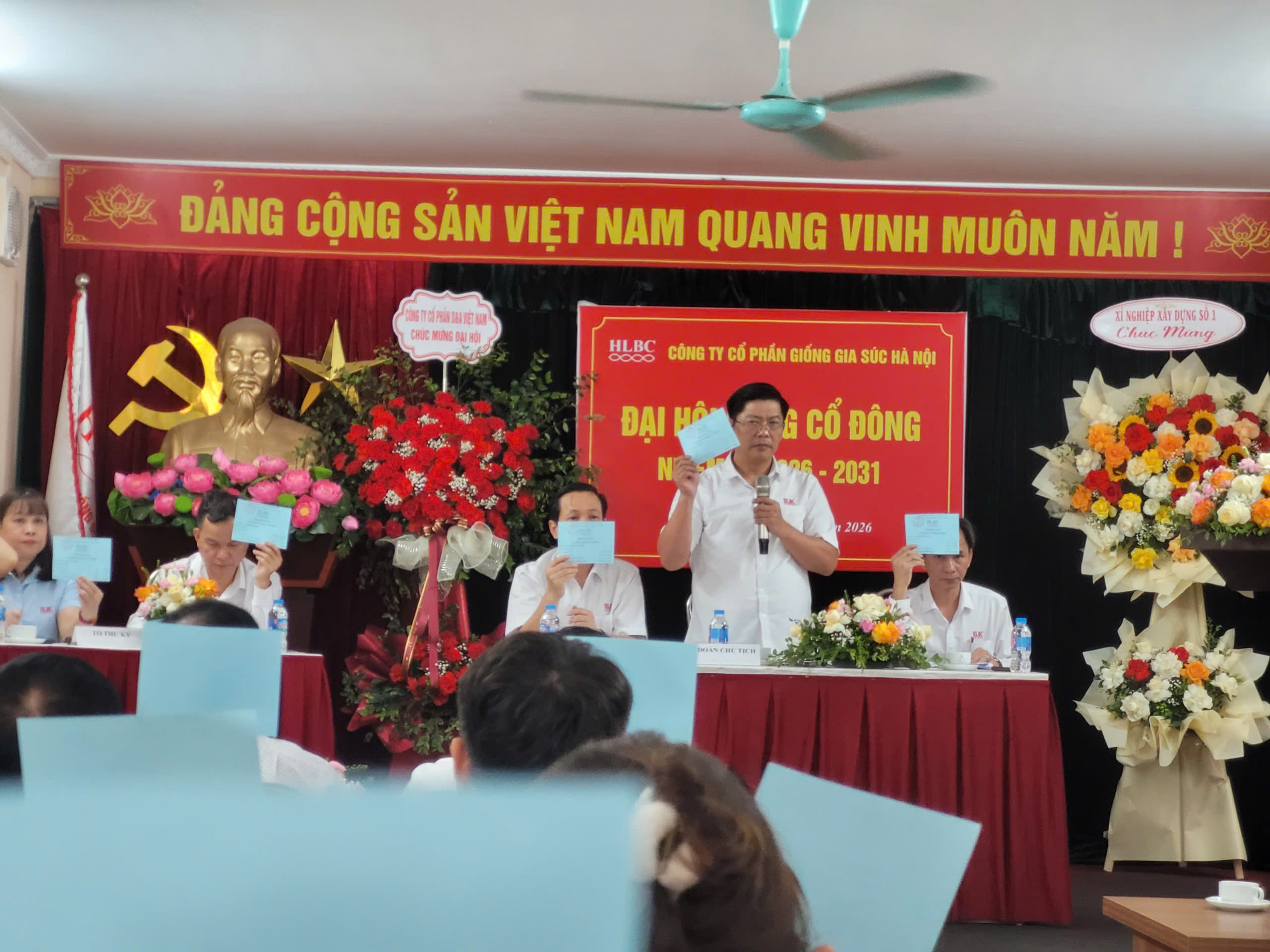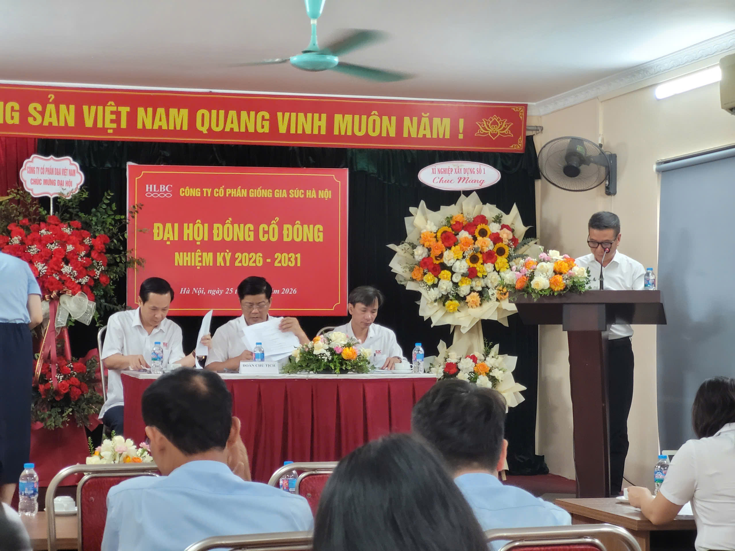 Ngày 25/04/2026, Công ty Cổ phần Giống gia súc Hà Nội đã tổ chức thành công Đại hội đồng cổ đông nhiệm kỳ 2026-2031. Tại đại hội, hội đồng cổ đông đã tín nhiệm bầu ra 5 thành viên HĐQT và 3 thành viên BKS hoạt động nhiệm kỳ 2026-2031. Hội đồng cổ đông đã thống nhất biểu quyết các nội dung tại đại hội như sau: